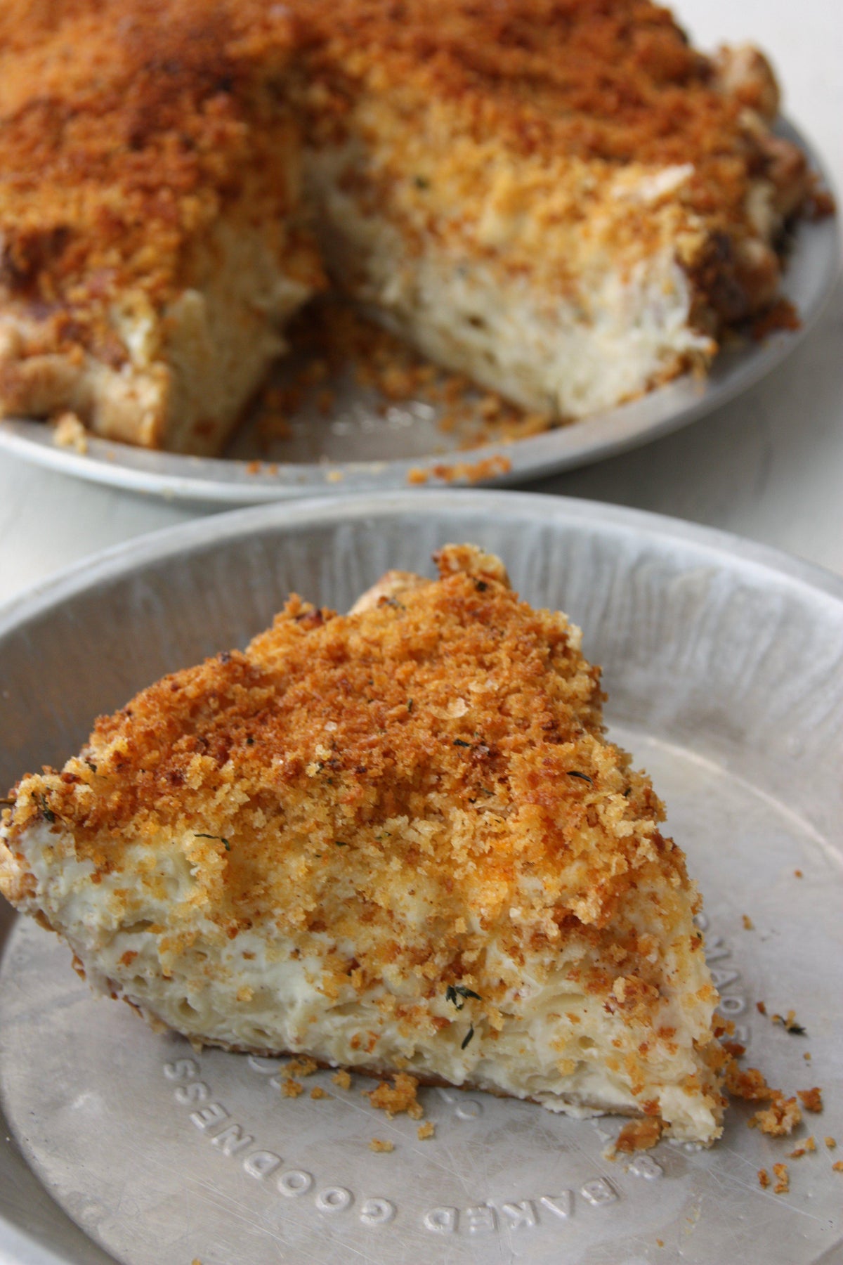 The ultimate comfort food! This pie features a three cheese mac & cheese made with white cheddar, gruyere & mozzarella cheese and topped with a thyme & chipotle spiced panko crumb.